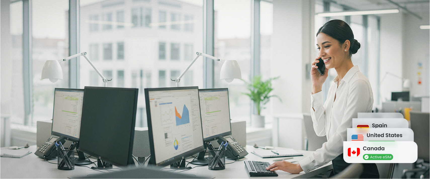 Yes! Employees with a dual-SIM phone can keep two SIMs active at once (travel eSIM for data, primary SIM for their regular business phone number).
