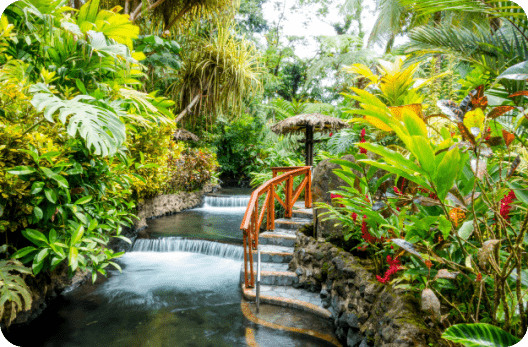 Tabacon Hot Springs: Located in the north region of Costa Rica at the base of Arenal Volcano, you will experience nature, adventure, and relaxation at this luxury resort.