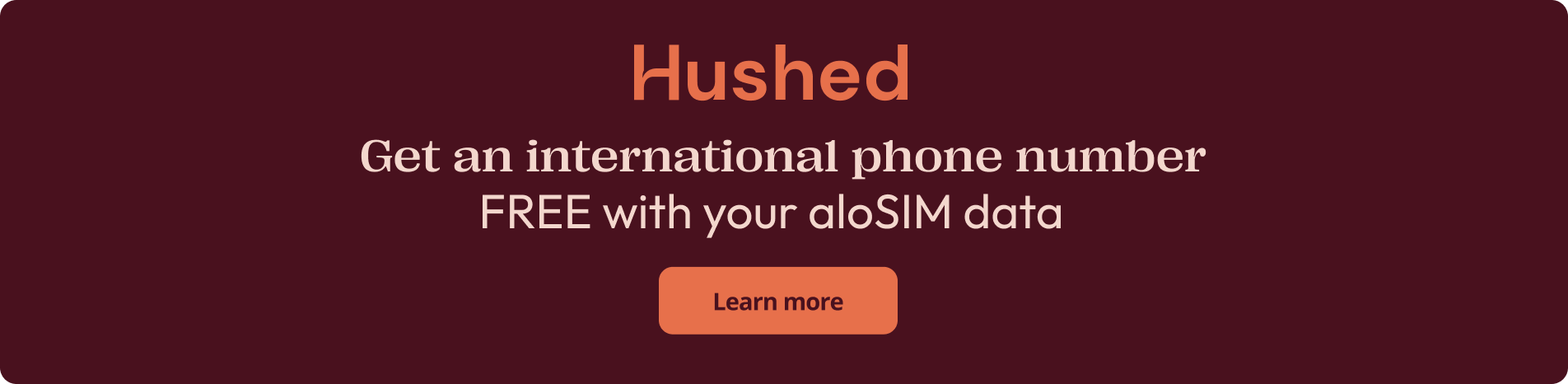 Get a free travel number (international calling and texting): If you’re going to be using an eSIM (downloadable SIM card) for data on your trip, buy your data package from aloSIM and you’ll get a free phone number from our sister app, Hushed. Choose any number from the available Canada and United States area codes, and it will be a fully international phone plan that can call or text anywhere in the world. The phone package will last as long as your data package.